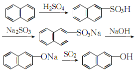 止。反应中生成的二氧化硫气体及时用蒸汽排除,中和产物降温至35~40℃冷却结晶,吸滤所得结晶用10%食盐水洗涤,吸干后,于300~310℃下加到熔融态的98%的氢氧化钠中,搅拌并维持320~330℃,使2-萘磺酸钠碱熔为2-萘酚钠,然后用热水稀释碱熔物,再通入上述中和反应生成的二氧化硫,在70~80℃下酸化反应直到酚酞呈无色为止。将酸化产物静置分层,所得上层液体加热至沸,静置,分去水层,所得粗品2-萘酚先加热脱水,再减压精馏,可得纯品。