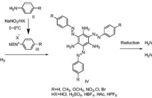背景及概述[1] 六氨基(3盐酸盐)为芳香烃类衍生物,可用作有机合成中间体。 制备[1] 六氨基(3盐酸盐)的简易合成: 步骤1:氟硼酸4-甲基胺重氮盐的合成 将亚硝酸钠(704mg,1.01mmo…