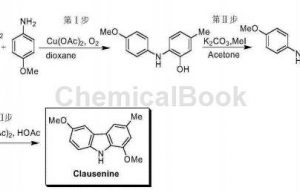 概述 对甲氧基胺是一种重要的有机原料,可用于制备多种医药中间体。 应用[1-4] 一、clausenine是一种咔唑类天然产物,具有抗菌活性。cn201410027161报道了一种用铜催化6-重氮…