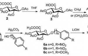 背景及概述[1] 对硝基基-β-d-吡喃葡糖醛酸苷为糖类衍生物,可用作医药中间体。 制备[1] 对硝基基-β-d-吡喃葡糖醛酸苷制备具体步骤如下: 1)1,2,3,4-四-o-乙酰基葡萄糖醛酸酐(2…