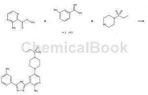 概述[1][2] 3-氨基甲脒二盐酸盐属于脒类有机物,其可用作一种有机中间体,可由三硝基腈制备3-硝基甲脒盐酸盐,然后再还原硝基制备3-氨基甲脒二盐酸盐。 制备[1-2] 步骤一、 称取3-硝基腈7…